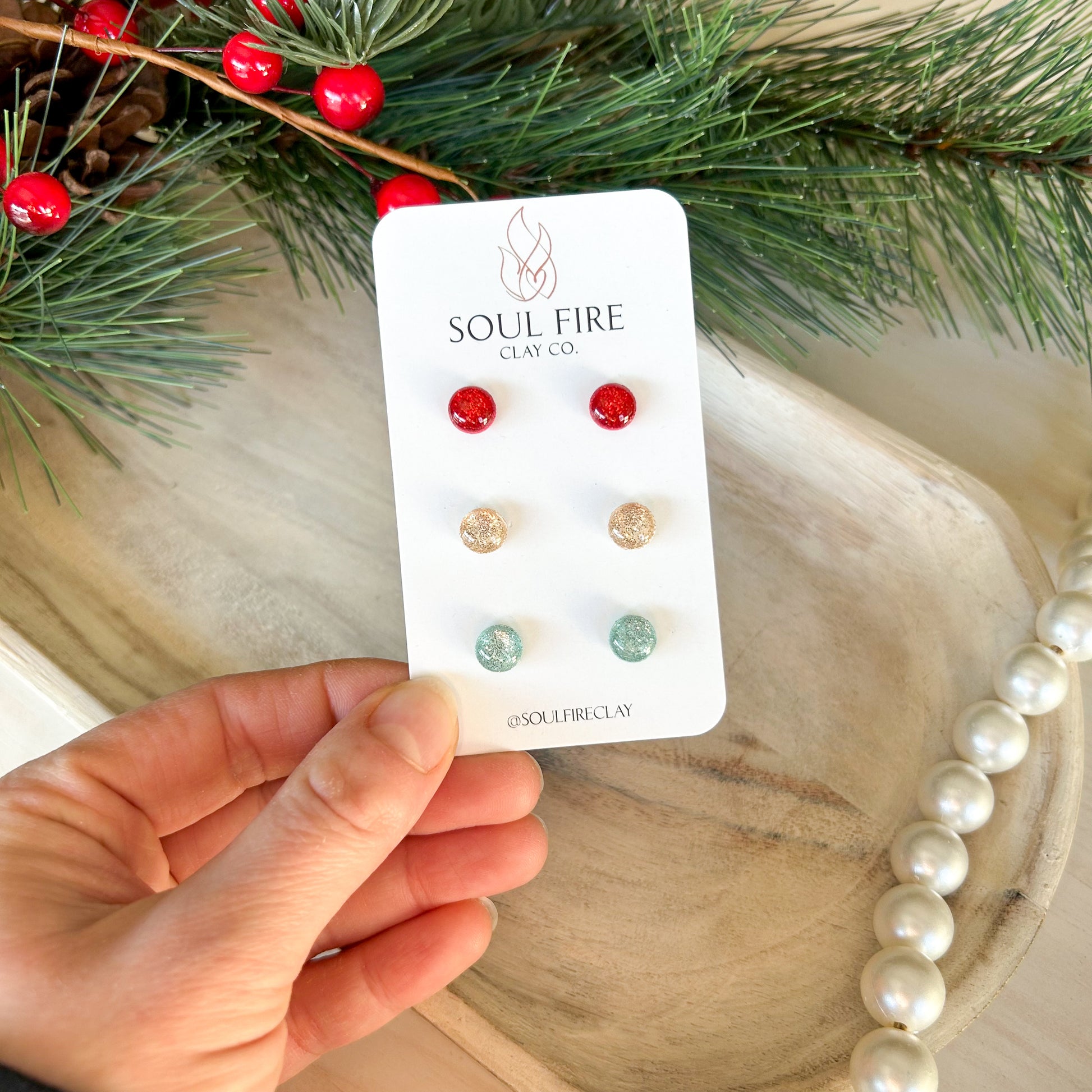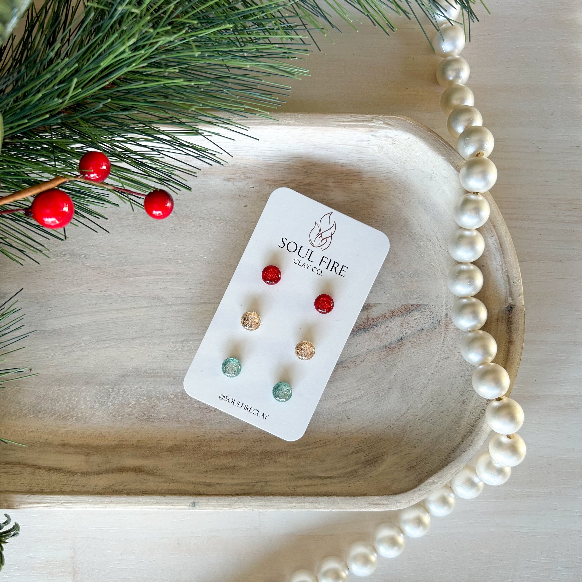Glitter Ball Stud Set - Christmas Statement Earrings