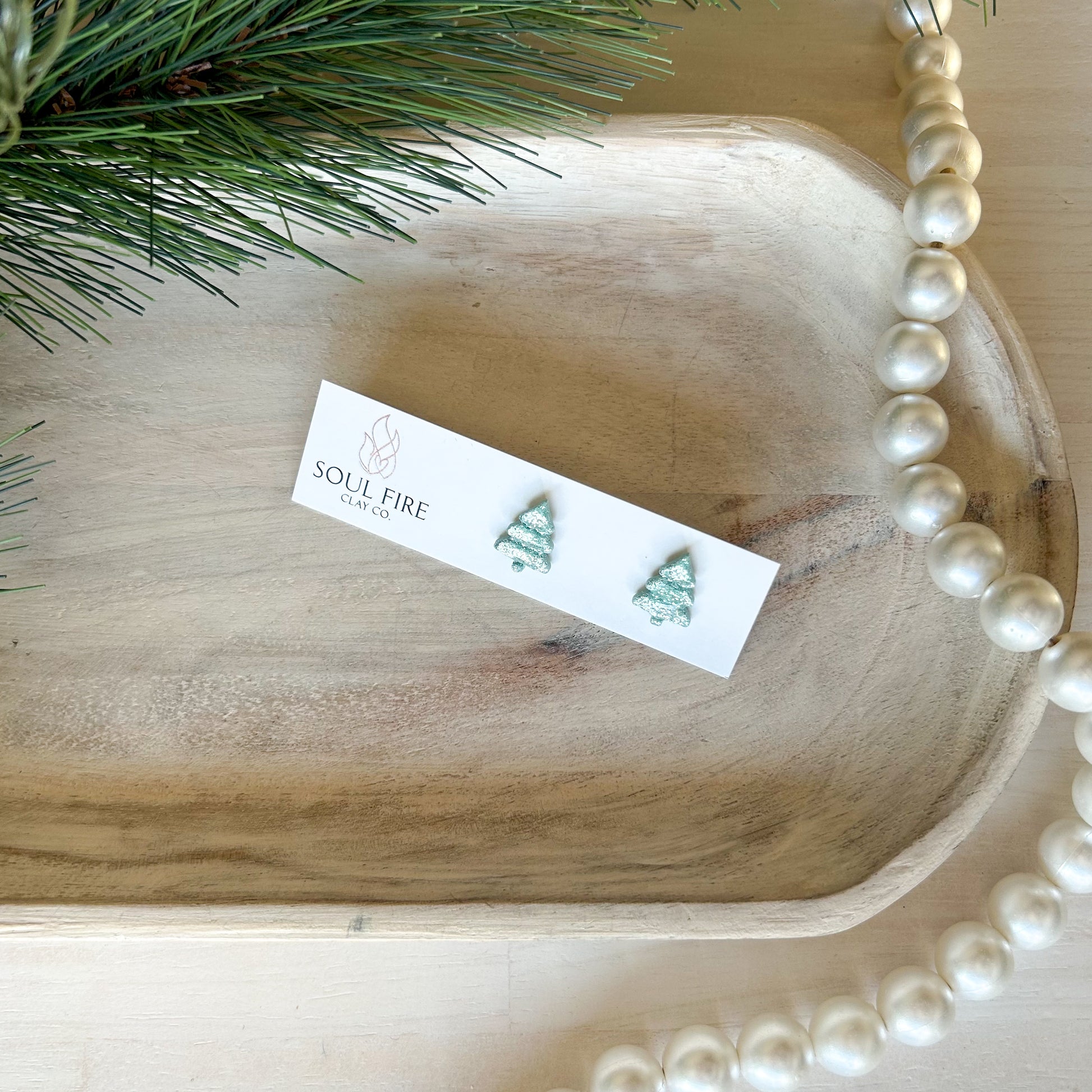 Glitter Tree Stud - Christmas Statement Earrings